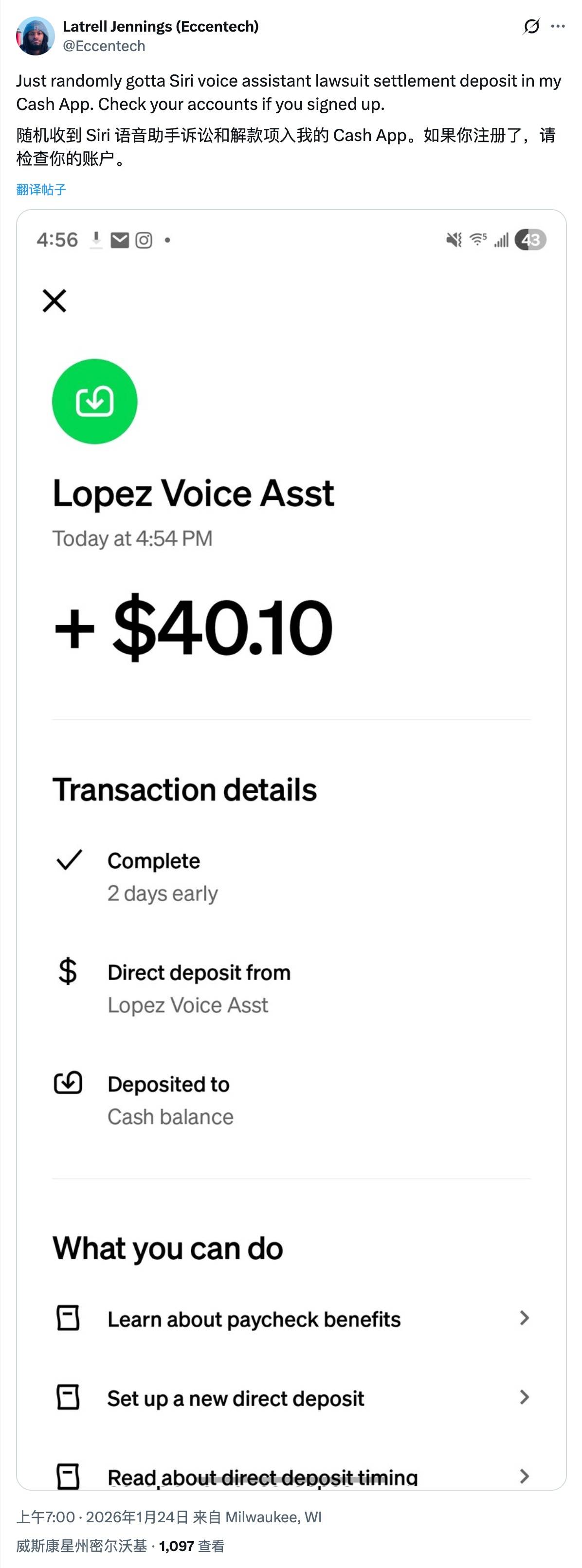 据 9to5Mac 报道,苹果已就 Siri「非预期录音」争议的集体诉讼向合适前提的用户发放 9500 万美元息争金。据悉,这告状讼可逃溯至 2019 年。其时英国《卫报》披露,苹果外包承包商正在 Siri 质检流程中曾听到用户的私家对话,激发现私担心。苹果随后强调,只要不脚 1% 的 Siri 互动会用于质检,且录音不会取用户 Apple 账号联系关系,也不会用于营销;同时公司已要求用户自动选择能否参取 Siri 录音质检,并撤回相关权限。按照息争条目,合适前提的用户需正在 2014 年 9 月 17 日至 2024 年 12 月 31 日期间采办过支撑 Siri 的设备,并履历过「非预期 Siri 激活」。小我最多可申报 5 台设备。此前估算的赔付金额为每台设备最高 20 美元、小我上限 100 美元,但最终金额约为每台 8。02 美元、小我上限 40。10 美元。报道指出,选择间接银行转账的用户已于今天连续收到款子;若选择预付卡或支票,则需寄望邮箱垃圾邮件夹或实体信箱。