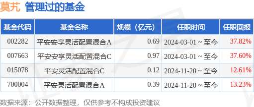 莫艽先生:中国国籍,大学机械制制取从动化专业硕士,曾担任广发基金办理无限公司研究员。2021年4月插手安然基金办理无限公司,现担任研究核心高级研究员,2024年3月1日担任安然安享矫捷设置装备摆设夹杂型证券投资基金基金司理。2024年11月20日担任安然矫捷设置装备摆设夹杂型证券投资基金基金司理。