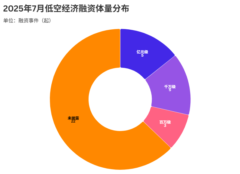 2025年7月低空经济融资体量数据发布,展示出行业内本钱活跃且多元的投入态势。正在已披露的融资事务中,“亿元级”取“万万级”融资均达5起,“百万级”融资为3起,分歧量级资金正在低空经济范畴多点开花,彰显本钱对该行业全方位的关心取支撑。
