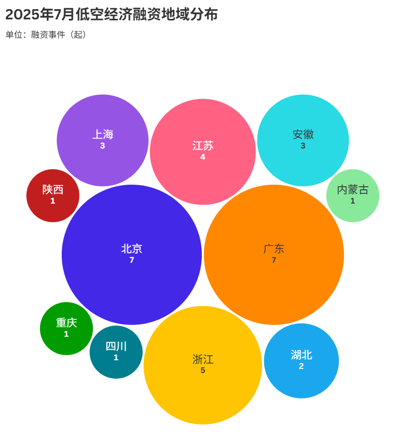 浙江以5起紧随其后,江苏4起、上海和安徽各3起,展示出长三角区域正在低空经济赛道的协同发力,财产配套、人才储蓄等协同劣势,驱动融资勾当活跃态势。